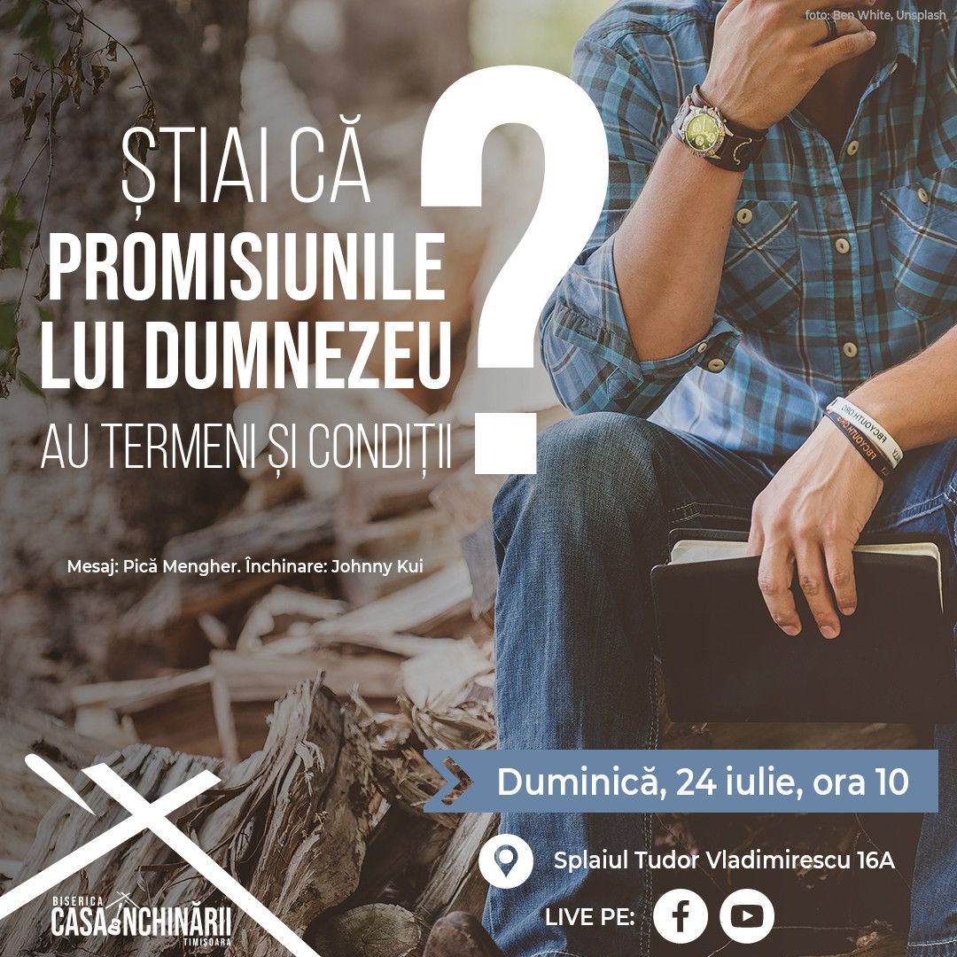 Ești binevenit în fiecare duminică de la ora 10! Vino pentru un timp de închinare având ca fundal muzică creștină contemporană, ascultă un mesaj despre Dumnezeu și neapărat rămâi la o cafea după, pentru un timp de părtășie cu noi.