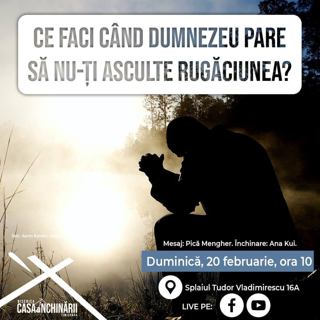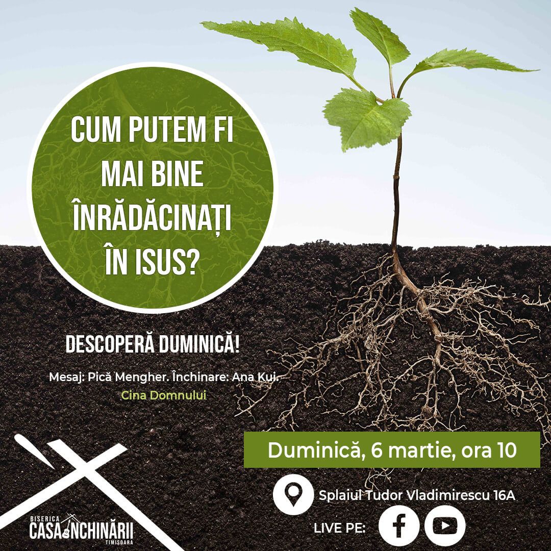 Ești binevenit în fiecare duminică de la ora 10! Vino pentru un timp de închinare având ca fundal muzică creștină contemporană, ascultă un mesaj despre Dumnezeu și neapărat rămâi la o cafea după, pentru un timp de părtășie cu noi.