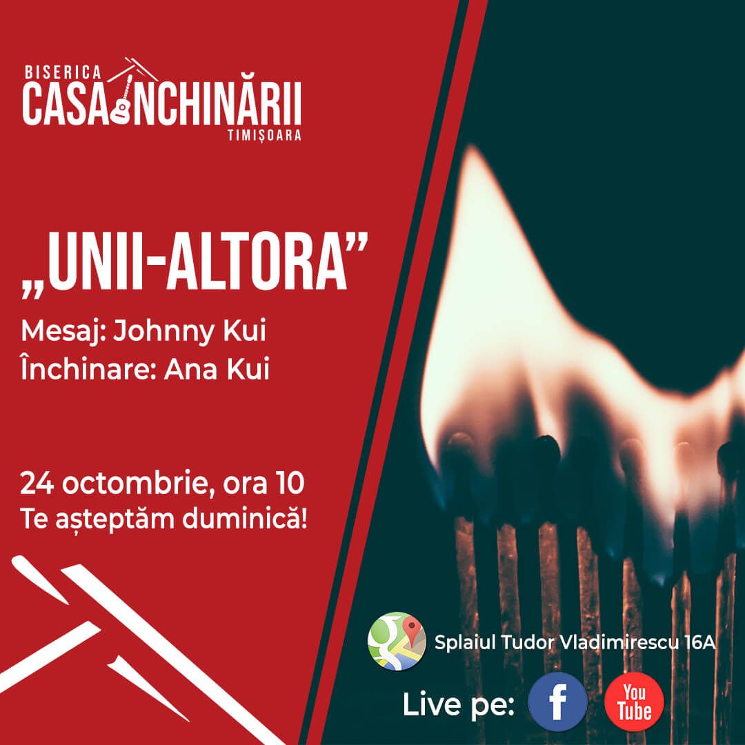 Ești binevenit în fiecare duminică de la ora 10! Vino pentru un timp de închinare având ca fundal muzică creștină contemporană, ascultă un mesaj despre Dumnezeu și neapărat rămâi la o cafea după, pentru un timp de părtășie cu noi.